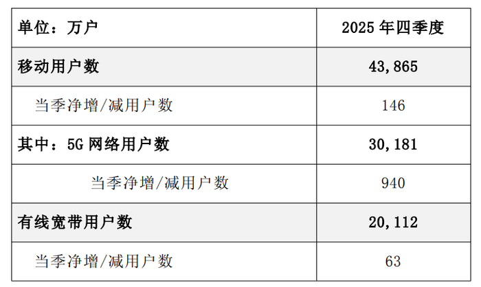 IT之家从公告获悉,中国电信 2025 年基础业务收入达到人民币 3305 亿元,同比增长 0.7%,移动用户达到 4.39 亿户,5G 网络用户渗透率达到 68.8%,宽带用户达到 2.01 亿户,千兆用户渗透率达到 31.6%。